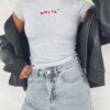 Fine Without You Baby Tee Grey Marle