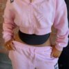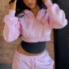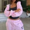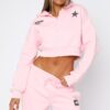 From The Archives Charli Cropped Zip Front Hoodie Pink